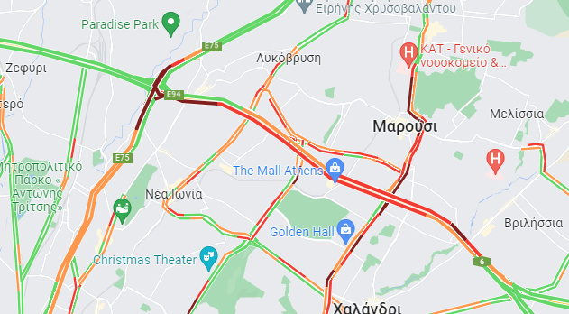 Αυτή την ώρα, τα περισσότερα προβλήματα εντοπίζονται στα βόρεια προάστια του λεκανοπεδίου και συγκεκριμένα, στο Μαρούσι, όπου η κίνηση είναι ιδιαίτερα αυξημένη και στα δύο ρεύματα κυκλοφορίας της Λ. Κηφισίας.
