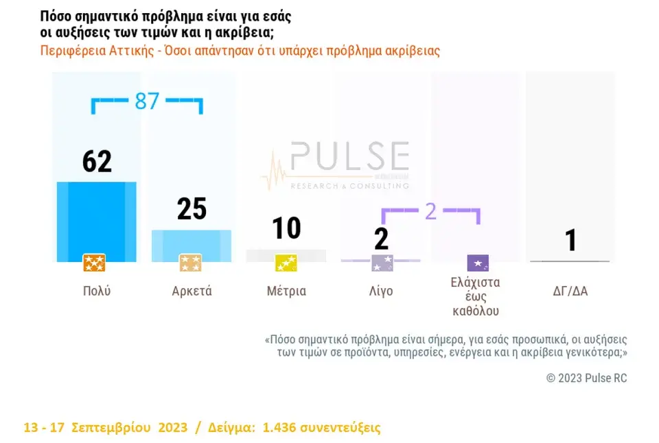 Από όσους απάντησαν ότι υπάρχει πρόβλημα αυξήσεων τιμών και ακρίβεια, το 87% το χαρακτηρίζει ως «Πολύ» ή «Αρκετά» σημαντικό.