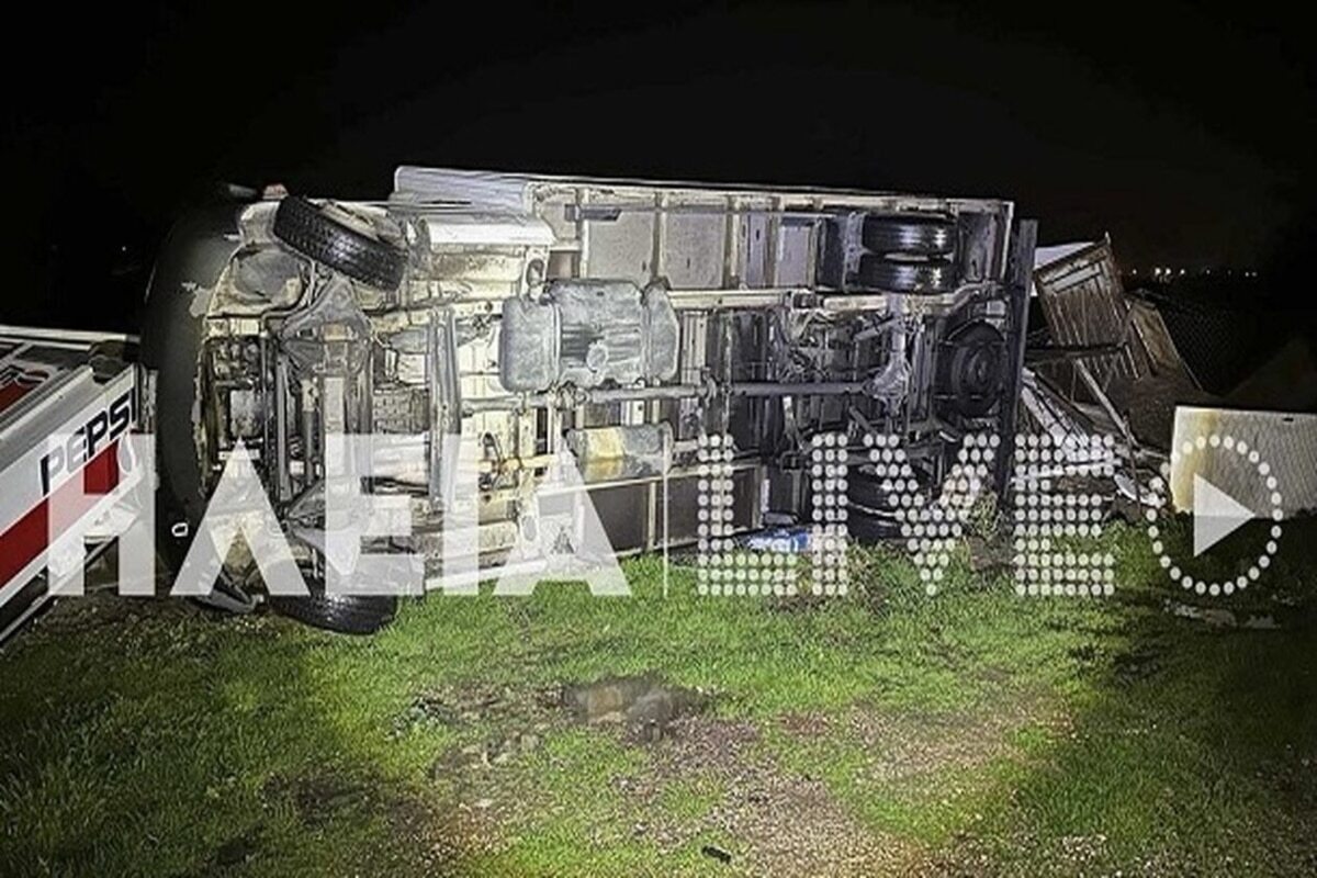 Στην περιοχή της οδού Αλφειού φορτηγό όχημα αναποδογυρίστηκε από τους ισχυρούς ανέμους που έπνεαν νωρίτερα στην περιοχή.