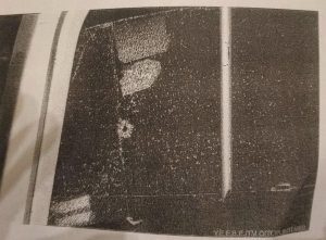 Η αλήθεια αυτού του ισχυρισμού του κ. κατηγορουμένου, ευτυχώς για τον ίδιο, επιβεβαιώνεται όχι μόνο από την κατάθεση του οδηγού της μοτοσυκλέτας, στην οποίαν επέβαινε, αλλά και από τις φωτογραφίες που αποδεικνύουν ποια ακριβώς ήταν η κατάσταση του οδοστρώματος εκείνη τη στιγμή που πυροβόλησε, ΑΛΛΑ ΚΥΡΙΩΣ ΑΠΟ ΤΟ ΑΝΤΙΚΕΙΜΕΝΙΚΟ ΕΥΡΗΜΑ ΟΤΙ Η ΠΡΩΤΗ ΣΦΑΙΡΑ ΒΡΕΘΗΚΕ ΝΑ ΕΧΕΙ ΧΤΥΠΗΣΕΙ ΤΟΝ ΤΟΙΧΟ ΕΝΟΣ ΞΕΝΩΝΑ στην πορεία του πυροβολισμού, αλλά σε χαμηλότατο σημείο από το έδαφος, γεγονός που αναμφισβήτητα αποδεικνύει ότι ο κ. κατηγορούμενος πυροβόλησε από ψηλά προς χαμηλά.