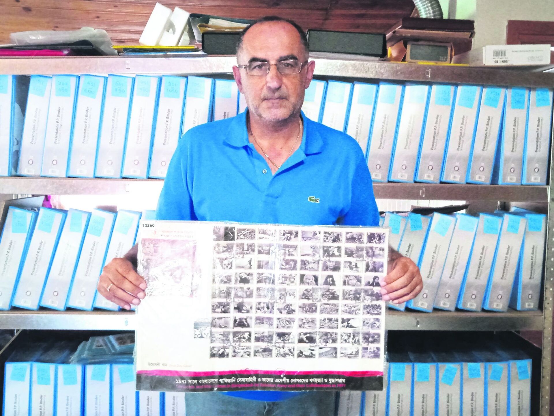 Το πιο εντυπωσιακό κομμάτι της συλλογής του είναι φάκελος του Μπαγκλαντές, ο οποίος κυκλοφόρησε το 1970 με συνολικά… 70 γραμματόσημα κολλημένα πάνω του. «Τους φακέλους και τα γραμματόσημα τα βρίσκω από ηλεκτρονικά καταστήματα στο Διαδίκτυο. Το συγκεκριμένο από το Μπαγκλαντές μου κόστισε περίπου 100 ευρώ, ενώ τα φθηνότερα κομμάτια της συλλογής μου κόστισαν από ένα ευρώ το καθένα», είπε ο 52χρονος. Τόνισε ότι η συλλογή είναι κάτι που τον γεμίζει ψυχικά και του δημιουργεί μοναδικά συναισθήματα. Άρχισε να σκέφτεται το βιβλίο ρεκόρ Γκίνες το 2015, όταν έπεσε στα χέρια του ένα βελγικό περιοδικών φιλοτελιστών, το οποίο καλούσε τους αναγνώστες να δείξουν τη συλλογή τους. «Τους έγραψα και μου έκαναν ολόκληρο αφιέρωμα. Τότε, σκέφτηκα να απευθυνθώ στο Γκίνες. Σκάναρα, τράβηξα βίντεο και αρχειοθέτησα και τους 13.360 φακέλους. Ήρθε συμβολαιογράφος για να επικυρώσει τη διαδικασία, έστειλα όλο το υλικό στο Γκίνες και περίμενα…», υπογράμμισε.