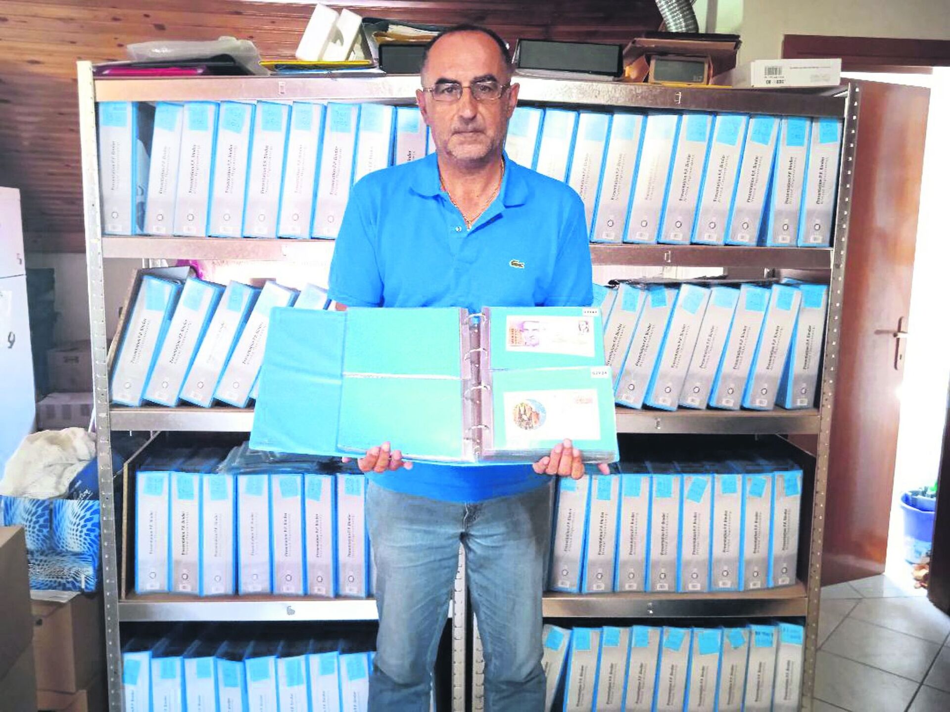 Ο 52χρονος λογιστής και υπάλληλος της ΔΕΥΑ Φαρκαδόνας Τρικάλων έχει πάθος με τους ταχυδρομικούς φακέλους και τα γραμματόσημα.