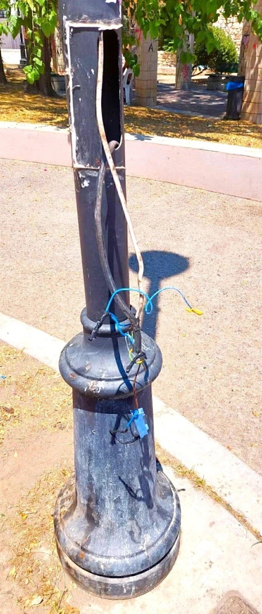 Ειδικότερα, οι δράστες βανδάλισαν φωτιστικά, εγκαταλείποντας εκτεθειμένα ηλεκτροφόρα καλώδια που θα μπορούσαν να προξενήσουν σοβαρούς τραυματισμούς έως και ηλεκτροπληξία στους επισκέπτες και όπως επισημαίνεται, κάποιες από τις καταστροφές έγιναν σε φωτιστικά σώματα περιμετρικά της νέας παιδικής χαράς, η οποία κατασκευάστηκε από τον Δήμο και παραδόθηκε στους πολίτες προς χρήση, μόλις πριν λίγες ημέρες.