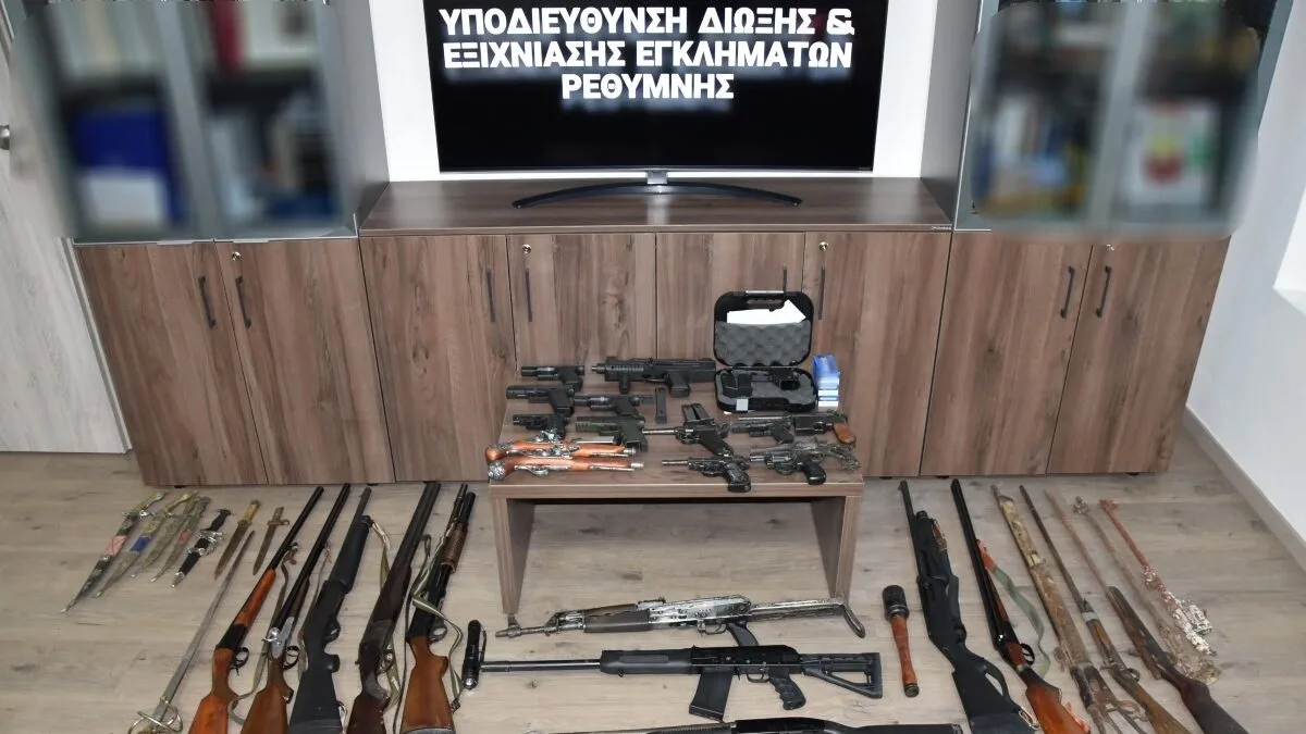 «Ολοκληρώθηκε χθες, αστυνομική επιχείρηση που οργανώθηκε από αστυνομικούς της Υποδιεύθυνσης Δίωξης και Εξιχνίασης Εγκλημάτων Ρεθύμνου και πραγματοποιήθηκε με τη συνδρομή αστυνομικών της Ομάδας Πρόληψης και Καταστολής Εγκλήματος Ρεθύμνου και του Τμήματος Αστυνομικών Επιχειρήσεων Ρεθύμνου σε περιοχές του Δήμου Αγίου Βασιλείου.Κατά τη διάρκεια της επιχείρησης συνελήφθησαν πέντε ημεδαποί ηλικίας από 36 έως 52 ετών κατηγορούμενοι για παραβάσεις νομοθεσίας περί όπλων.