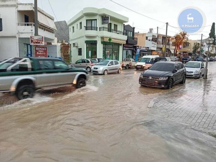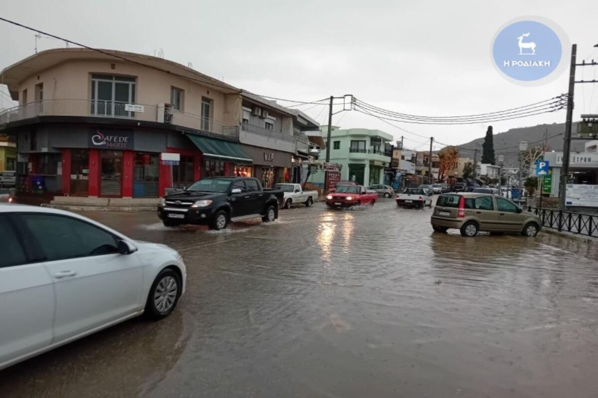 Κεντρικοί οδοί και δρόμοι πλημμύρισαν, με το πρόβλημα από την κακοκαιρία να εστιάζεται στο οδικό δίκτυο της Λίνδου και στην περιοχή του Αρχαγγέλλου.