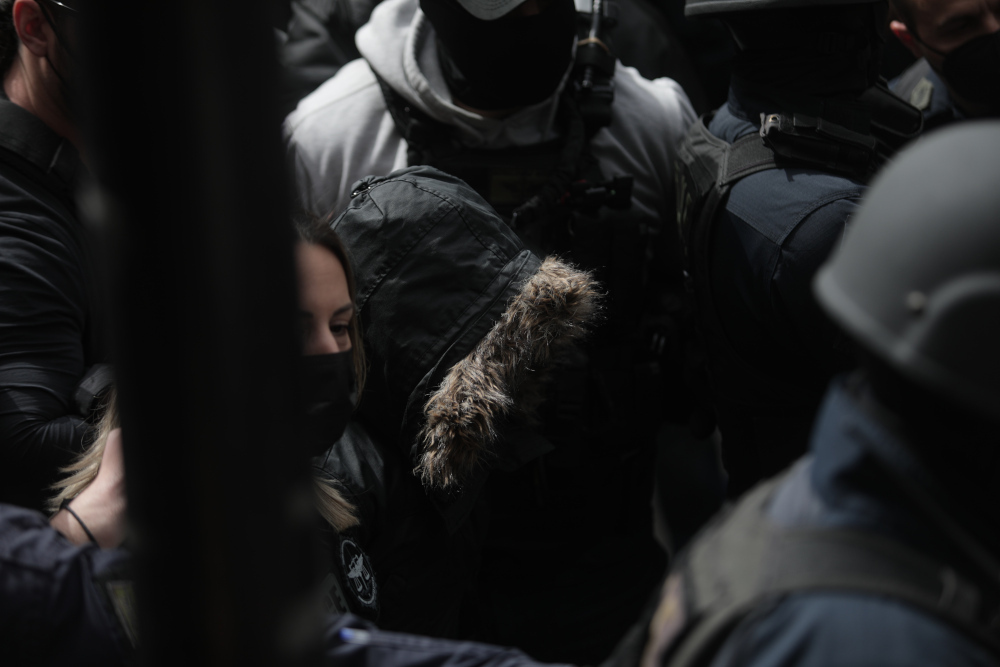 Άνδρες των ΜΑΤ και της ΟΠΚΕ έσπρωχναν τον κόσμο, τεχνικούς και δημοσιογράφους, για να μην την πλησιάσουν καθώς φοβούνταν ότι θα την λιντσάρουν.