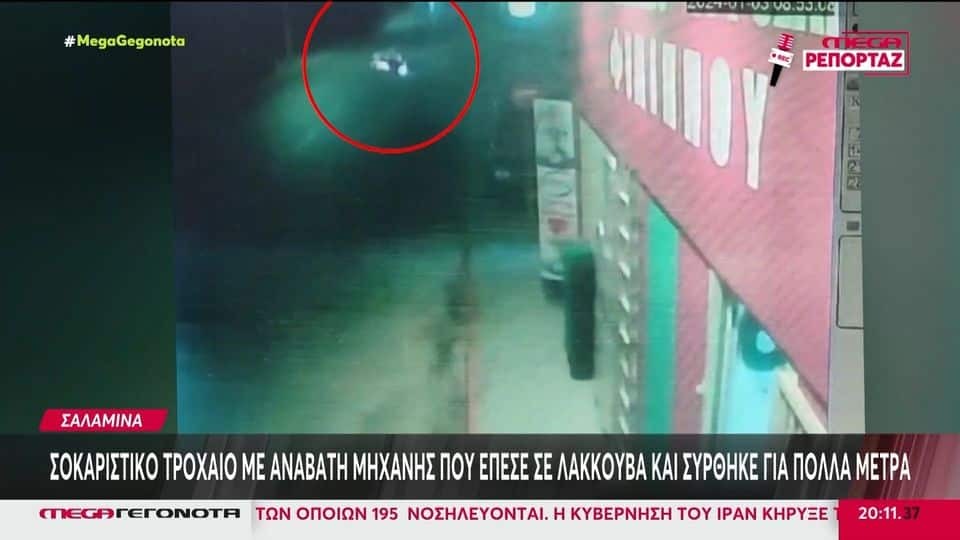 Κάμερα ασφαλείας από κατάστημα κατέγραψε τη στιγμή που ο νεαρός πέφτει στη λακούβα και σε κλάσματα δευτερολέπτου βρίσκεται στην άσφαλτο.Ο οδηγός φορούσε κράνος αλλά και ειδικό μπουφάν, κάτι που απέτρεψε να τραυματιστεί περισσότερο.