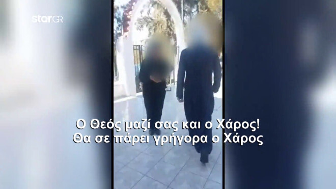 Το κεντρικό δελτίο ειδήσεων του Star έφεραν στο «φως» βίντεο ντοκουμέντο του ιερέα, ο οποίος έχει ξεφύγει από κάθε όριο και όχι μόνο καταριέται πιστούς, αλλά και τους… στολίζει με ακατανόμαστους χαρακτηρισμούς στο προαύλιο του Αγίου Παντελεήμονα Σαλαμίνας.