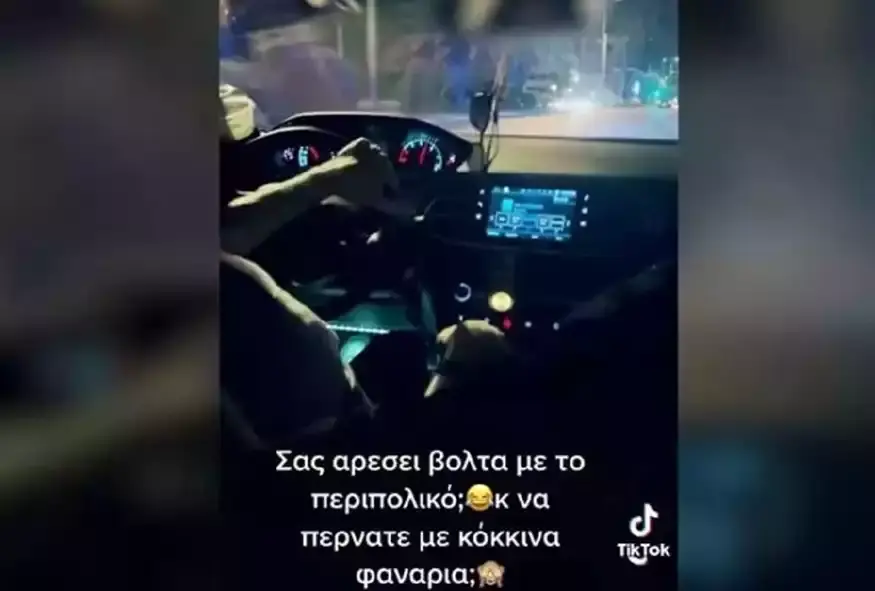 Το επίμαχο βίντεο φαίνεται να είναι τραβηγμένο από το εσωτερικό ενός περιπολικού, του οποίου ο οδηγός ενεργοποιεί τις σειρήνες και περνάει ένα φανάρι με κόκκινο, ενώ ακούγονται και γυναικείες φωνές από τα πίσω καθίσματα.
