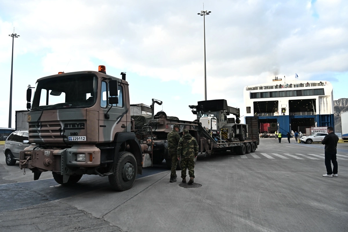 Παράλληλα 2 φορτηγά του ΔΕΔΔΗΕ με γεννήτριες καθώς και οχήματα με κεραίες κινητής τηλεφωνίας αποβιβάστηκαν επίσης από το καράβι που έδεσε στο λιμάνι του νησιού.