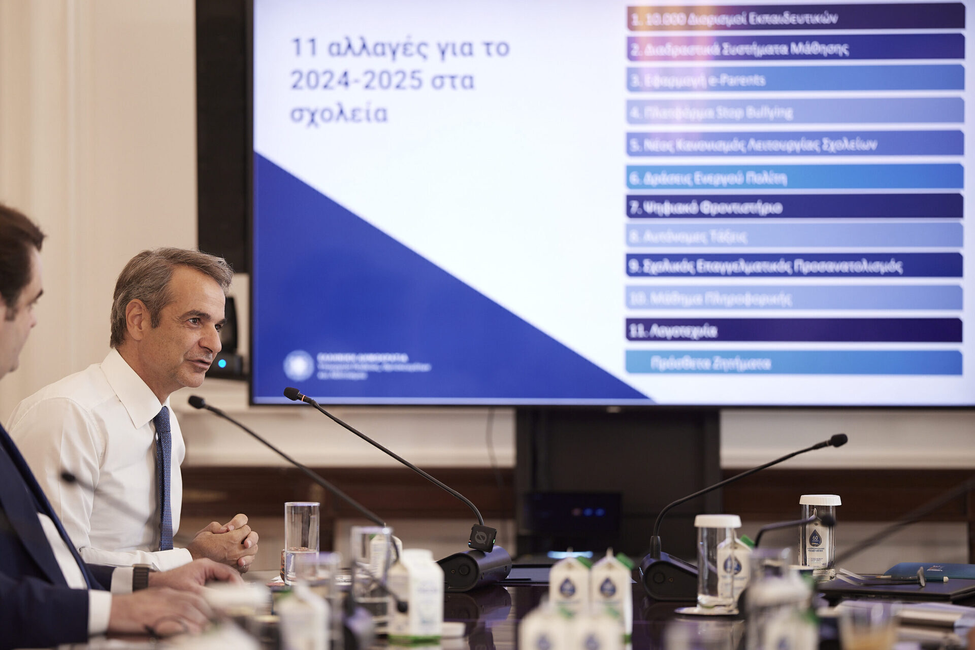Όπως επισημάνθηκε στο πλαίσιο της σύσκεψης, για το σχολικό έτος 2024-25 έχουν γίνει ακόμα 10.000 διορισμοί μόνιμων εκπαιδευτικών όλων των ειδικοτήτων, με αποτέλεσμα από το 2019 έως σήμερα το διδακτικό προσωπικό των δημόσιων σχολείων να έχει ενισχυθεί με περισσότερους από 37.500 δασκάλους και καθηγητές.