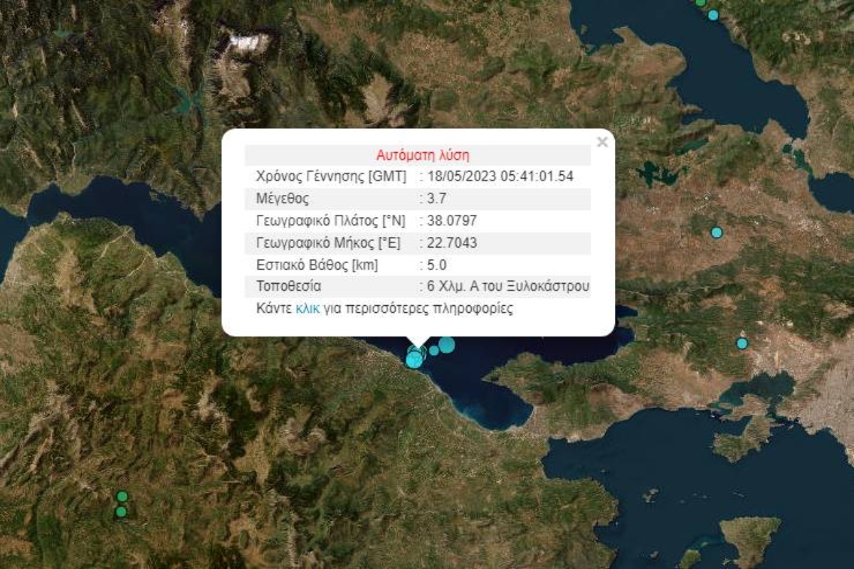 Νέα διπλή σεισμική δόνηση ταρακούνησε λίγο μετά τις 8:40 το πρωί της Πέμπτης 18/05 την Κόρινθο. Σύμφωνα με την Αυτόματη Λύση του Γεωδυναμικού Ινστιτούτου Αθηνών ο πρώτος σεισμός ήταν 3,7 Ρίχτερ και ο δεύτερος 3,8 Ρίχτερ.