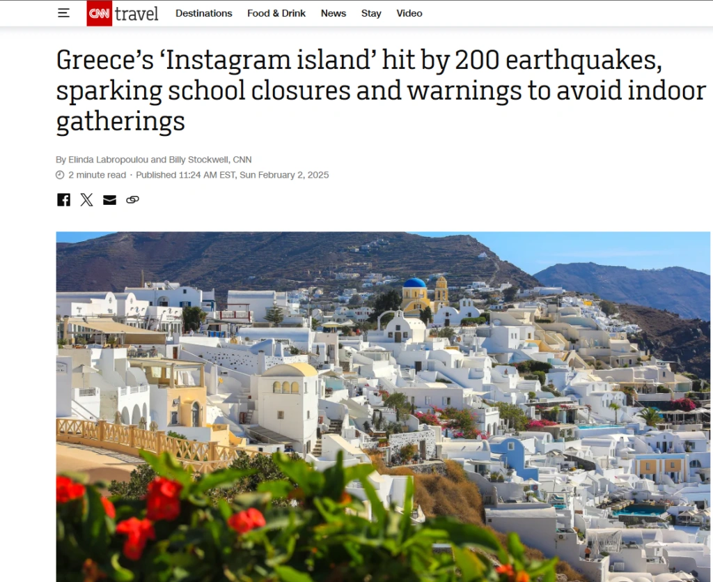 Σεισμός: Πρώτη είδηση στα διεθνή Μέσα – Πόσο θα βλάψει τον τουρισμό η σεισμική δραστηριότητα