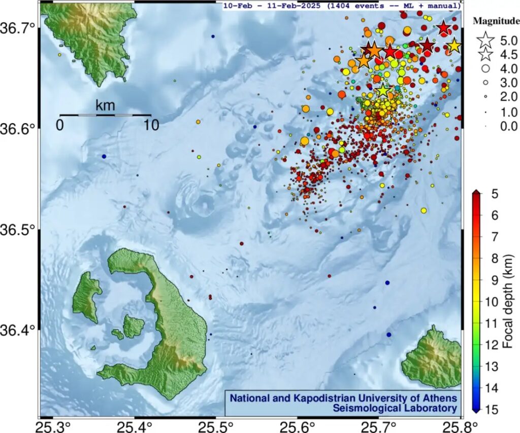 Στην ανακοίνωσή της για τους αλλεπάλληλους σεισμούς στις Κυκλάδες, η Διεπιστημονική Επιτροπή Διαχείρισης Κινδύνων και Κρίσεων του ΕΚΠΑ σημειώνει ότι από την έναρξη της σεισμικής δραστηριότητας στη ζώνη Σαντορίνης – Αμοργού στις 26 Ιανουαρίου έως και τις 10 Φεβρουαρίου 2025, έχουν καταγραφεί πάνω από 15.300 δονήσεις.