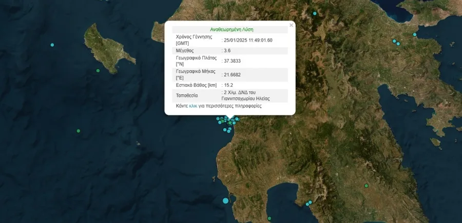 Το εστιακό βάθος του σεισμού ήταν 15,2 χιλιόμετρα ενώ το επίκεντρο του ήταν 2 χιλιόμετρα Δυτικά Νοτιοδυτικά του Γιαννιτσοχωρίου Ηλείας.