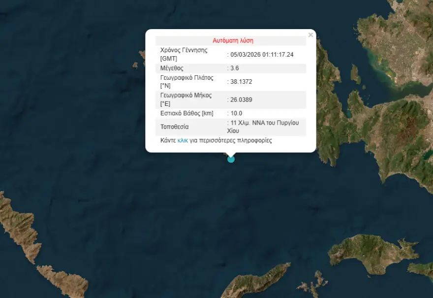 Πληροφορίες αναφέρουν ότι η σεισμική δόνηση έγινε αισθητή όχι μόνο στη Χίο, αλλά και σε περιοχές στα τουρκικά παράλια.