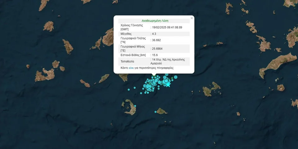 Σύμφωνα με το Γεωδυναμικό Ινστιτούτο, η δόνηση που καταγράφηκε στις 11:41 είχε επίκεντρο 14 χιλιόμετρα νοτιοδυτικά της Αρκεσίνης και το εστιακό της βάθος υπολογίζεται στα 15,6 χιλιόμετρα.