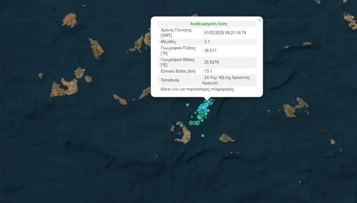 Ο πρώτος σημειώθηκε 24 χλμ. νοτιοδυτικά της Αρκεσίνης Αμοργού, είχε μέγεθος 3,1 βαθμούς της κλίμακας Ρίχτερ και εστιακό βάθος 13,1 χιλιομέτρων.
