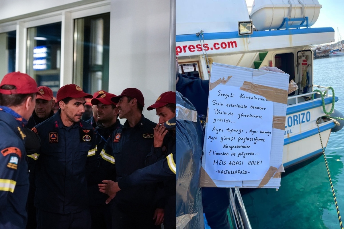 Το Γραφείο του Περιφερειακού Διοικητή του Καστελόριζου μοιράστηκε στον λογαριασμό του στα μέσα κοινωνικής δικτύωσης τις φωτογραφίες των δεμάτων αλλά και το σημείωμα στα κουτιά που έγραφε: «Αγαπητέ γείτονα. Οι καρδιές μας καταστράφηκαν μαζί με τα σπίτια σου. Ό,τι μπορούμε κάνουμε για τα αδέρφια μας, με τα οποία μοιραζόμαστε την ίδια γη, τον ίδιο αέρα και τον ίδιο ήλιο. Οι άνθρωποι του Καστελόριζου».