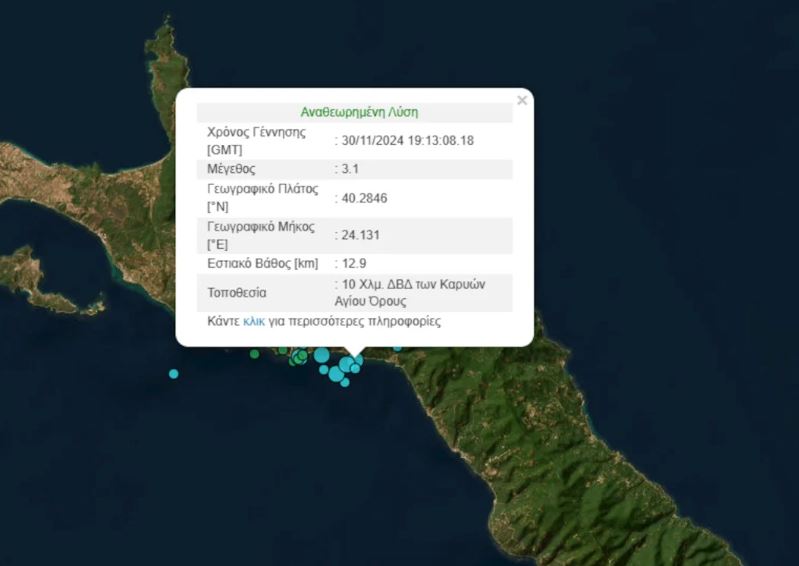 Σύμφωνα με το Γεωδυναμικό Ινστιτούτο, η σεισμική δόνηση είχε επίκεντρο 10 χιλιόμετρα δυτικά / βορειοδυτικά των Καρυών,