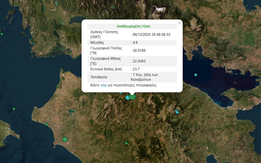 Το Ευρωμεσογειακό Σεισμολογικό Κέντρο καταγράφει ότι ο σεισμός είχε μέγεθος 4,8 βαθμών της κλίμακας Ρίχτερ και το επίκεντρο ήταν επτά χιλιόμετρα δυτικά, νοτιοδυτικά των Καλαβρύτων και είχε εστιακό βάθος 6χλμ.