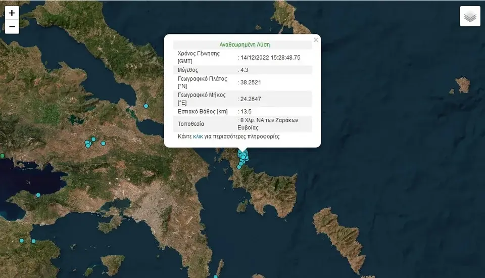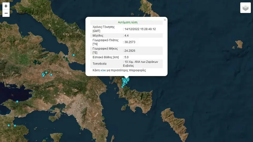 Σύμφωνα με το Γεωδυναμικό Ινστιτούτο, το επίκεντρο υπολογίζεται στα 8 Χλμ. νοτιοανατολικά των Ζαράκων Ευβοίας και το εστιακό βάθος στα 13,5 Χλμ.