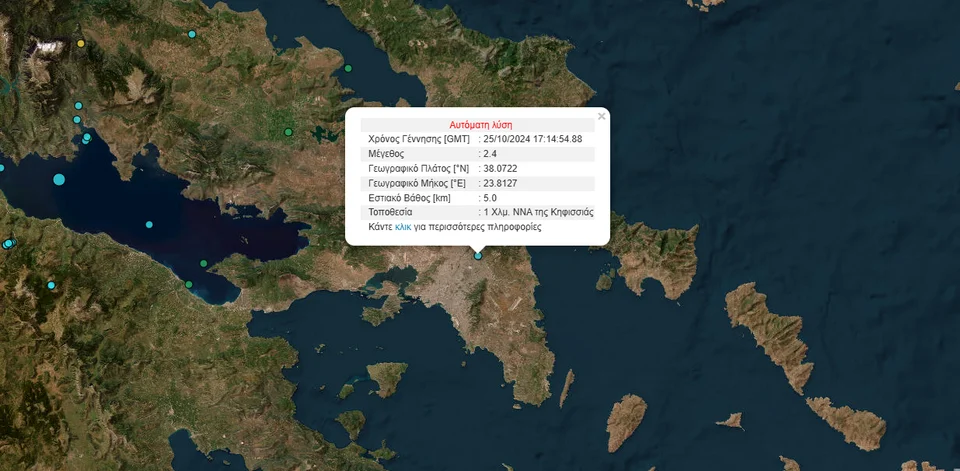 Σύμφωνα με τις πρώτες αναφορές ο σεισμός σημειώθηκε ένα χιλιόμετρο νότια, νοτιοανατολικά της Κηφισιάς και ήταν 2,4 ρίχτερ με εστιακό βαθος στα 5 χιλιόμετρα.