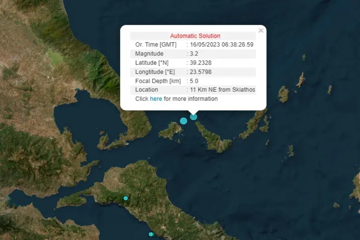 Σύμφωνα με το Γεωδυναμικό Ινστιτούτο το επίκεντρο του σεισμού εντοπίζεται σε θαλάσσια περιοχή ανάμεσα στην Σκιάθο και την Σκόπελο, και συγκεκριμένα 11 χιλιόμετρα νοτιοανατολικά της Σκιάθου.