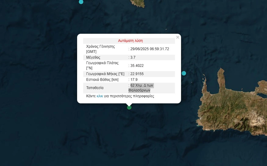 Το επίκεντρο εντοπίζεται 62 χιλιόμετρα δυτικά των Φαλασάρνων ενώ το εστιακό βάθος 17,9 χιλιόμετρα.