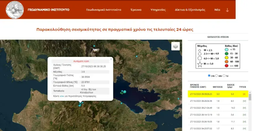 Σύμφωνα με το Γεωδυναμικό Ινστιτούτο, ο σεισμός είχε επίκεντρο μόλις τέσσερα χιλιόμετρα όρεια και βορειανατολικά των Καλαβρύτων, ενώ το εστιακό βάθος ήταν στα 5 χιλιόμετρα.