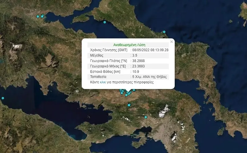 Το επίκεντρο του σεισμού εντοπίζεται 5 χιλιόμετρα ανατολικά νοτιοανατολικά της Θήβας, ενώ το εστιακό βάθος υπολογίζεται σε 10,9 χιλιόμετρα.