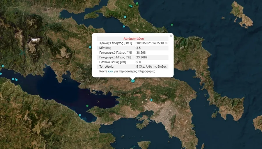 Σύμφωνα με το Γεωδυναμικό Ινστιτούτο η σεισμική δόνηση είχε εστιακό βάθος 5 χιλιομέτρων, ενώ το επίκεντρό της καταγράφηκε στα 5 Χιλιόμετρα Ανατολικά – νοτιοανατολικά της Θήβας. Ο σεισμός μάλιστα έγινε αισθητός και στην Αθήνα, όπως αναφέρουν αναγνώστες του Eleftherostypos.gr.