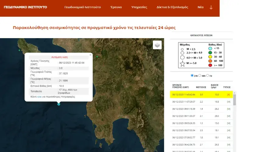 Το επίκεντρο του σεισμού σύμφωνα με το Γεωδυναμικό Ινστιτούτο εντοπίζεται στη θαλάσσια περιοχή 17 χιλιόμετρα ανατολικά νοτιοανατολικά των Στροφάδων και το εστιακό του βάθος στα 10 χιλιόμετρα.