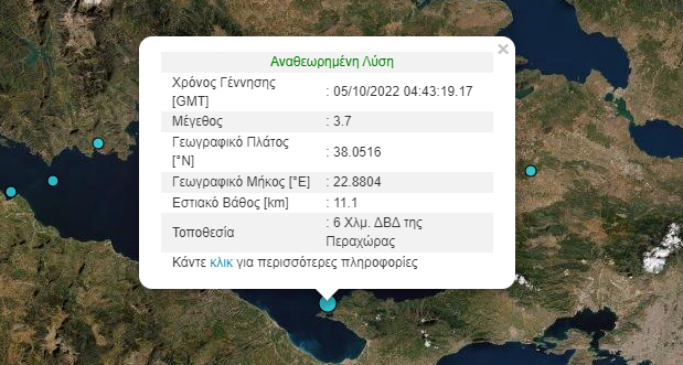 Ειδικότερα ο σεισμός σημειώθηκε στις 07:43 το πρωί της Τετάρτης, με το επίκεντρο να εντοπίζεται 6 χλμ. δυτικά-βορειοδυτικά της Περαχώρας.