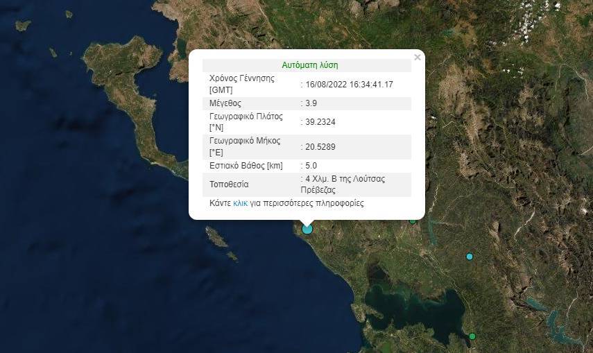 Το εστιακό βάθος είναι 5 χιλιόμετρα ενώ η σεισμική δόνηση εντοπίστηκε 4 χιλιόμετρα Βόρεια της Λούτσας Πρέβεζας σύμφωνα με το Γεωδυναμικό Ινστιτούτο Αθηνών.