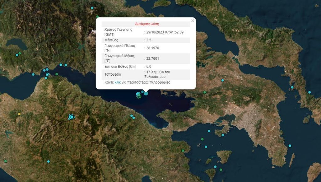 Να σημειωθεί πως το πρωί υπήρξε ακόμη ένας σεισμός μεγέθους 3,5 βαθμών της κλίμακας Ρίχτερ σημειώθηκε στα ανοιχτά του Ξυλοκάστρου.