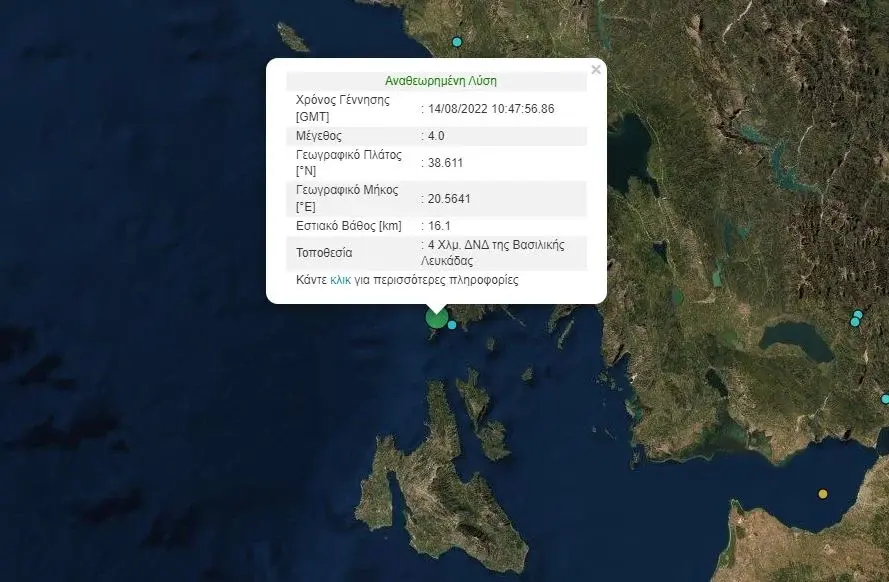 Το εστιακό βάθος του σεισμού υπολογίζεται στα 10 χιλιόμετρα ενώ το επίκεντρο βρίσκεται 23 χλμ νοτιοδυτικά από την Λευκάδα.