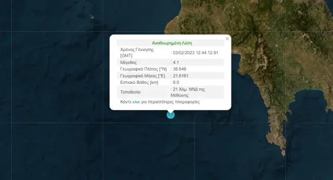 Αναλυτικά, η σεισμική δόνηση σημειώθηκε στις 14:44, είχε επίκεντρο 21 χιλιόμετρα νότια, νοτιοδυτικά της Μεθώνης και εστιακό βάθος 6 χιλιόμετρα, ενώ έγινε ιδιαίτερα αισθητός στην Καλαμάτα. Ο σεισμός, σύμφωνα με το Γεωδυναμικό Ινστιτούτο είχε ένταση 4,1 Ρίχτερ, ενώ αρχικά η Αυτόματη Λύση τον έδινε στα 4 Ρίχτερ.