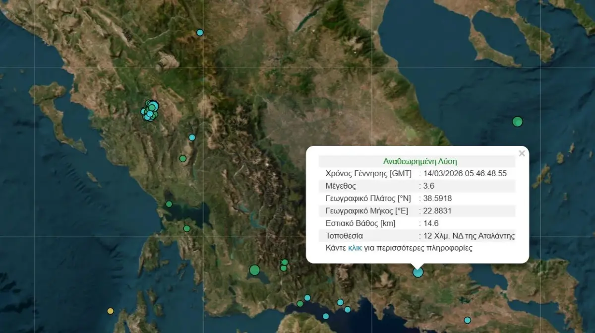 Το επίκεντρο εντοπίστηκε περίπου 12 χιλιόμετρα νοτιοδυτικά της Αταλάντης, ενώ το εστιακό βάθος υπολογίζεται στα 14,6 χιλιόμετρα.