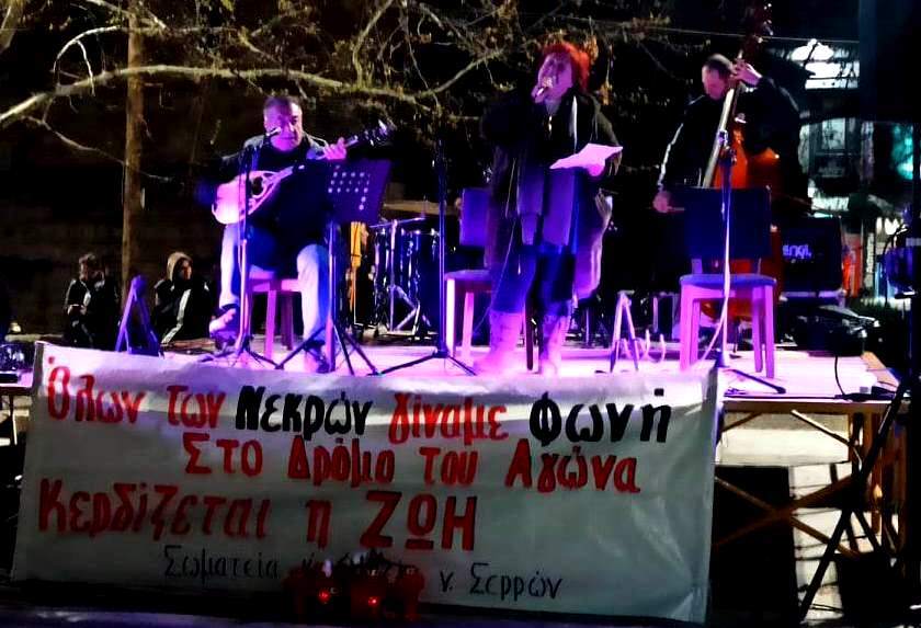 Περισσότεροι από δέκα φορείς, σύλλογοι και εργατικά σωματεία της Π.Ε. Σερρών, η Συντονιστική Επιτροπή Μαθητών και ο Φοιτητικός Σύλλογος ΣΜΗ ΔΙΠΑΕ, διοργάνωσαν το απόγευμα της Κυριακής μουσική διαμαρτυρία, στο κέντρο της πόλης, στην πλατεία Ελευθερίας.