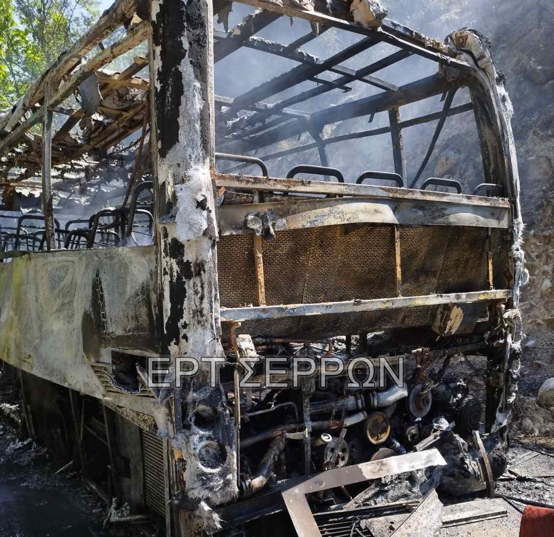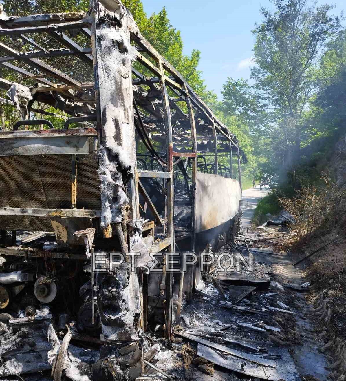 Δείτε τις φωτογραφίες του καμένου τουριστικού λεωφορείου στις Σέρρες