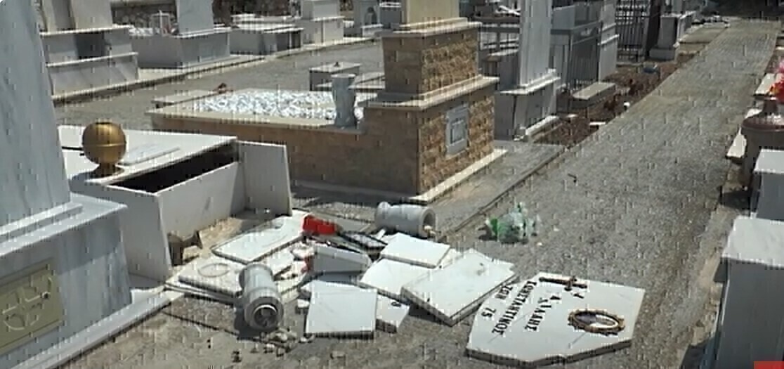 Το πέρασμα ανεμοστρόβιλου όπως λένε οι κάτοικοι του χωριού, ήταν αρκετό για να διαλύσει πολλούς τάφους από τα κοιμητήρια της περιοχής.