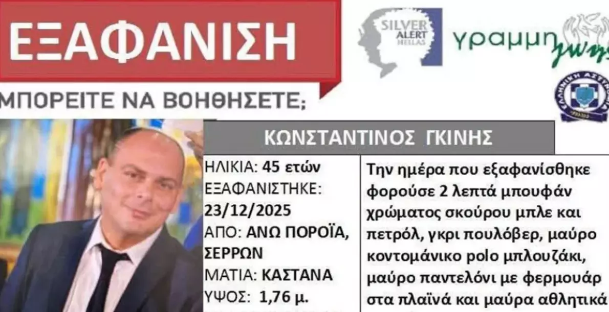 Ο πυροσβέστης αγνοείται από το πρωί της Τρίτης, όταν έφυγε με το αυτοκίνητο του από το σπίτι και έκτοτε δεν έχει δώσει σημεία ζωής. Η εξαφάνιση του 45χρονου άντρα δηλώθηκε στο Αστυνομικό Τμήμα Πορροΐων από τη σύζυγό του, όταν διαπιστώθηκε ότι απουσίαζε από το σπίτι για περισσότερες από 24 ώρες, χωρίς να έχει εμφανιστεί ούτε στην υπηρεσία του.