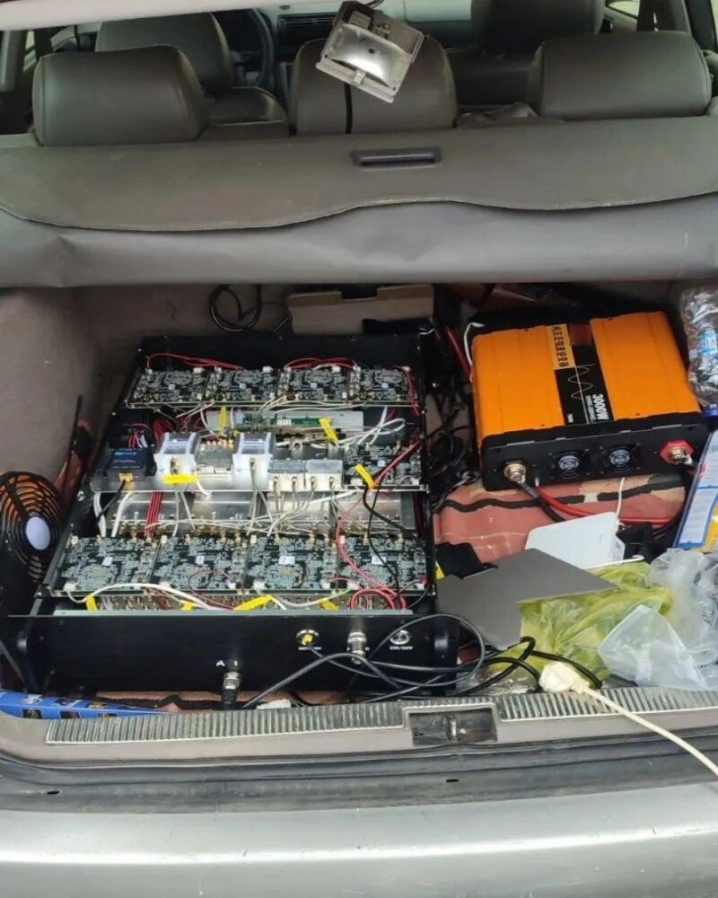 Ο μηχανισμός, που βρέθηκε στο αυτοκίνητό τους μετά από καταγγελία υπαλλήλου, περιλάμβανε μια βαλίτσα και μια κεραία τοποθετημένη στον ουρανό του οχήματος. Η κεραία λειτουργούσε ως «κλώνος» κεραίας κινητής τηλεφωνίας, παραπλανώντας τις συσκευές να συνδεθούν στο δικό τους δίκτυο.