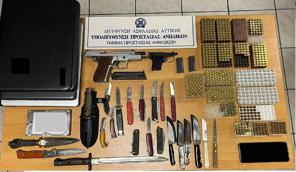 Σημειώνεται ότι στην κατοχή του 53χρονου βρέθηκαν και κατασχέθηκαν 2 πιστόλια, 572 φυσίγγια, 21 μαχαίρια, ξιφολόγχη, 2 φορητοί υπολογιστές και σκληρός δίσκος και στην κατοχή του 42χρονου φορητός υπολογιστής και 2 usb.