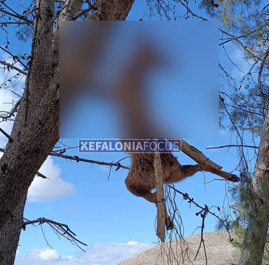 Το άτυχο ζώο εντόπισε περαστικός στις 22 του μήνα, να είναι δεμένο και κρεμασμένο σε δέντρο, και ειδοποίησε τις Αρχές.