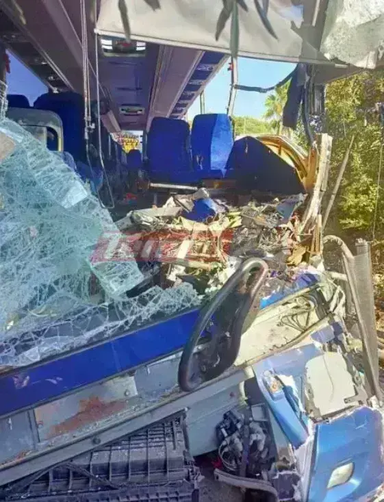 Το tempo24.gr δημοσίευσε φωτογραφίες από το τροχαίο δυστύχημα που κόστισε τη ζωή στον οδηγό του λεωφορείου, οι οποίες καταγράφουν την σφοδρότητα της σύγκρουσης.