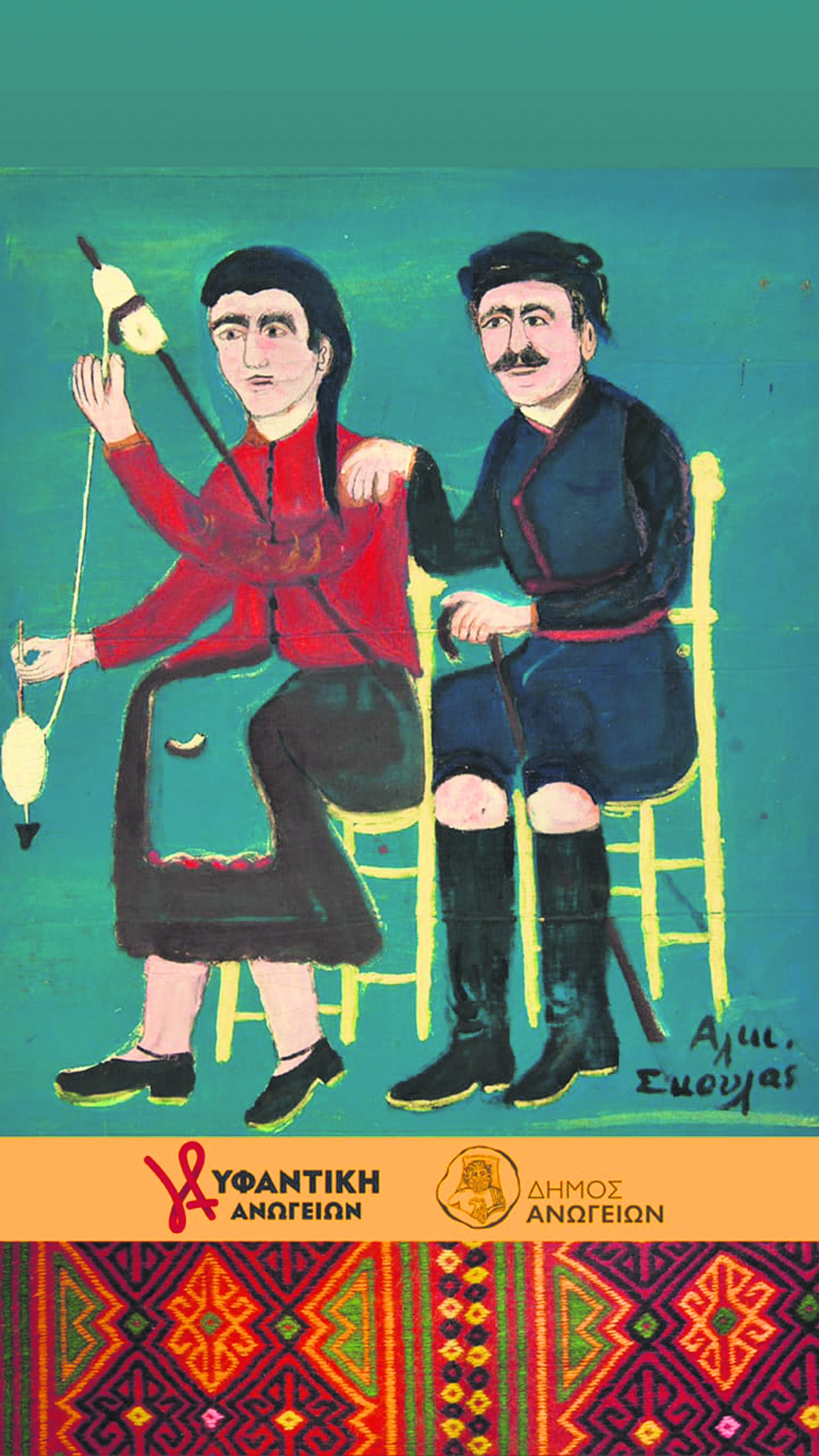 Στην Κρήτη, τα Ανώγεια επιλέχθηκαν ως ένας από τους βασικούς κόμβους για την ανάπτυξη Σχολής Υφαντουργίας, επιλογή που δικαιολογείται από την ισχυρή και διαχρονική τοπική παράδοση στον χώρο. Η υφαντική στα Ανώγεια δεν ήταν απλώς μια «γυναικεία υπόθεση», αλλά μια ευρέως διαδεδομένη πρακτική, με το σύνολο των μελών της οικογένειας να έχουν ενεργό ρόλο τόσο στην παραγωγή υφαντών, όσο και στην πώλησή τους. Μάλιστα οι κάτοικοι διαθέτουν μακρά εμπειρία γύρω από την επεξεργασία νημάτων και την εμπορία υφαντικών προϊόντων.
