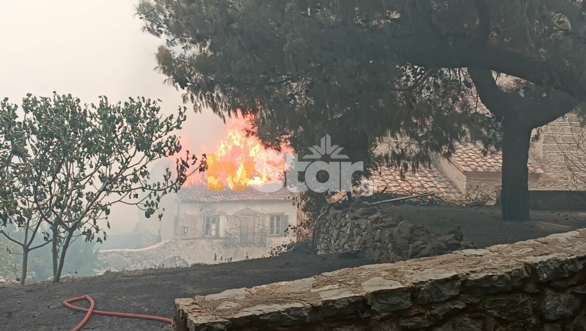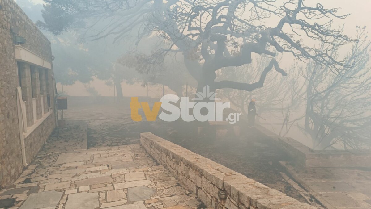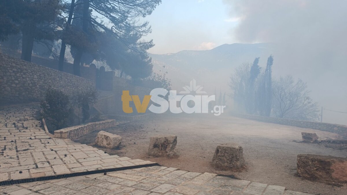 Η πυρκαγιά στο πέρασμά της έκαψε ολοσχερώς τον περίβολο του ιστορικού μοναστηριού. Οι πρώτες φλόγες ξεπήδησαν το απόγευμα της Τετράρτης 23 Αυγούστου. στο εσωτερικό της Μονής και καίνε ένα από τα παλαιότερα κτίρια.