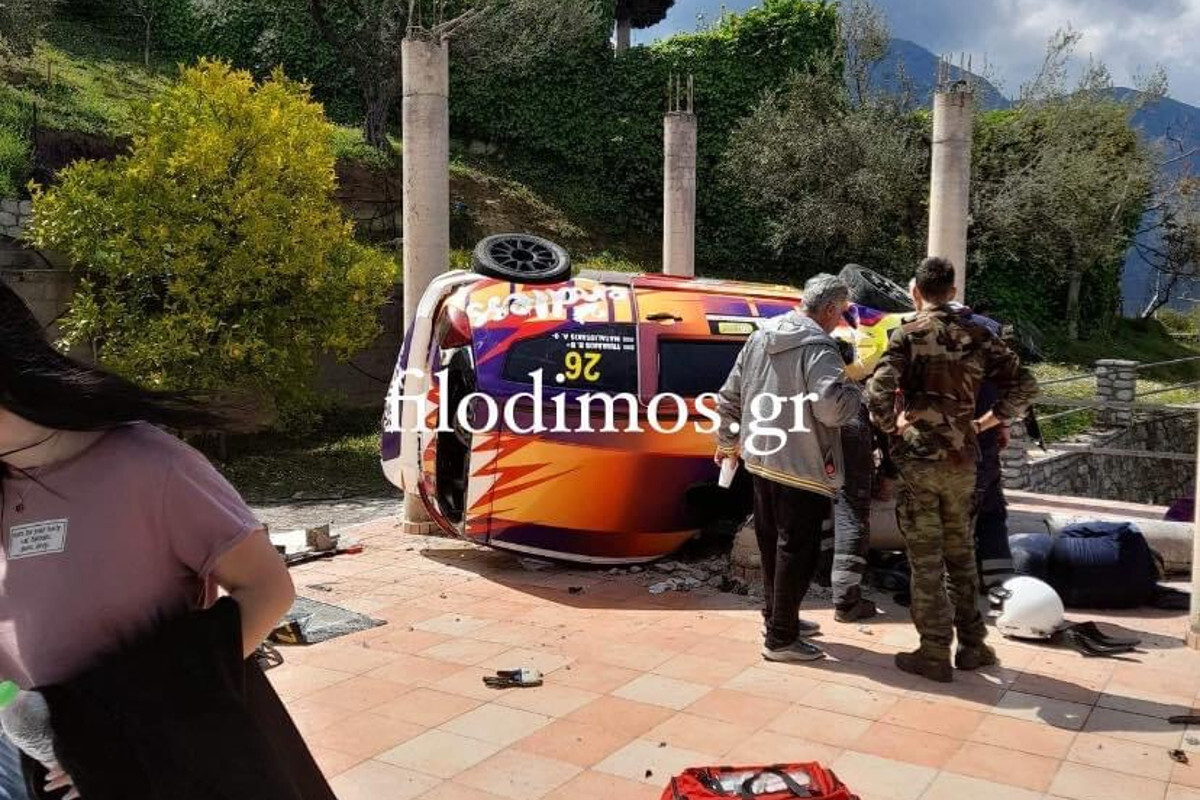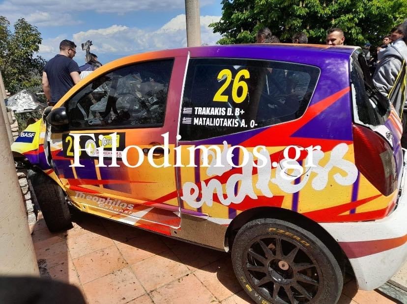 Κατά τη διάρκεια του αγώνα, ένα όχημα ξέφυγε από την πορεία του στο ύψος του χωριού Αχλαδιά και έπεσε από τον δρόμο και από μεγάλο ύψος, για να καταλήξει στην αυλή οικίας. Έχουν τραυματιστεί οι δυο επιβάτες, ενώ το όχημα έχει υποστεί σοβαρές ζημιές.